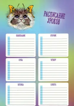 Расписание уроков. Кошка-бабочка №2, А4