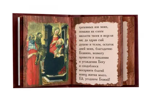 Данное миниатюрное издание содержит молитвы о выздоровлении от болезней. При оформлении были использованы работы художников: Бальдунг, Франческо Боттичини, Дирк Боутс (ст.), Йос Ван Вассенхоув, Отто ван Веен, Фернандо Галлего, Джотто ди Бондоне, Дуччо ди Буонисенья, Альбрехт Дюрер, Александр Иванов, Джованни Конельяно, Леонардо да Винчи, Андрей Рублев, Симон Ушаков.