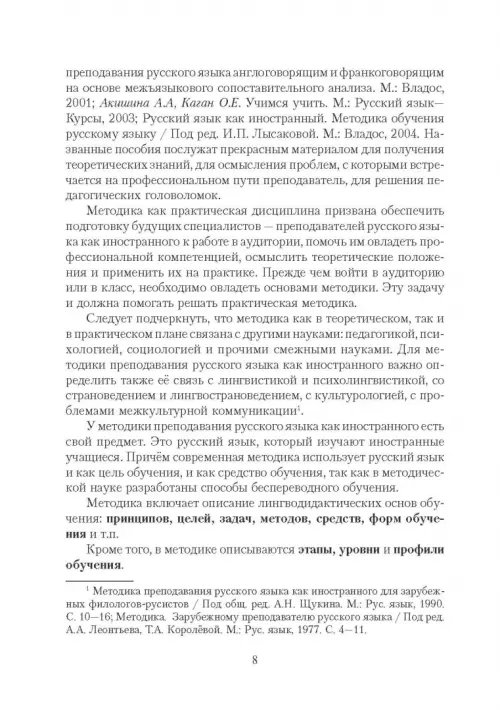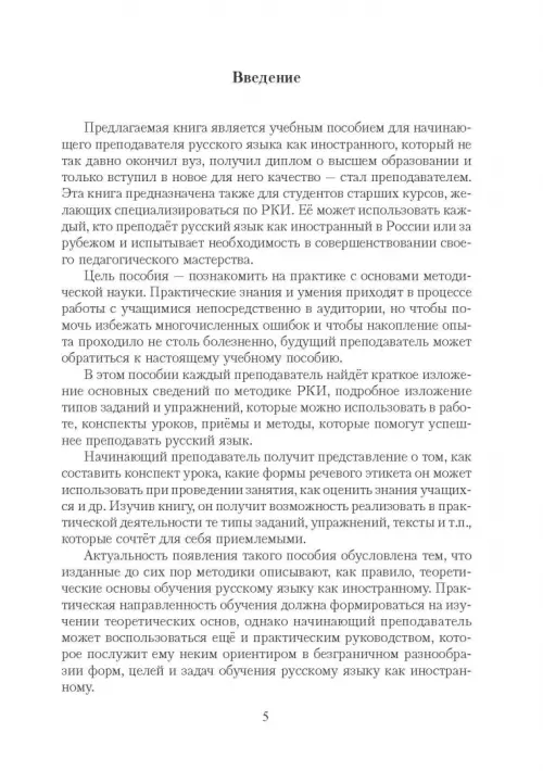 Для начинающего преподавателя русского языка как иностранного, для студентов старших курсов филологических и лингвистических специальностей, желающих специализироваться по РКИ, а также слушателей факультетов повышения квалификации.