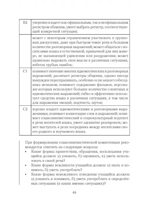 Уровни владения языком, свидетельствующие о