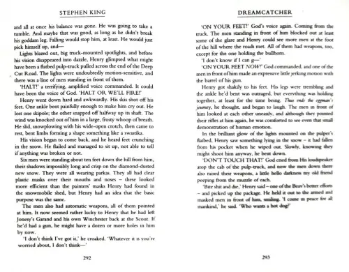 In Derry, Maine, four young boys once stood together and did a brave thing. Something that changed them in ways they hardly understand. A quarter of a century later, the boys are men who have gone their separate ways. Though they still get together once a year, to go hunting in the north woods of Maine. But this time is different. This time a man comes stumbling into their camp, lost, disoriented and muttering about lights in the sky. Before long, these old friends will be plunged into the most remarkable events of their lives as they struggle with a terrible creature from another world. Their only chance of survival is locked in their shared past - and in the Dreamcatcher.