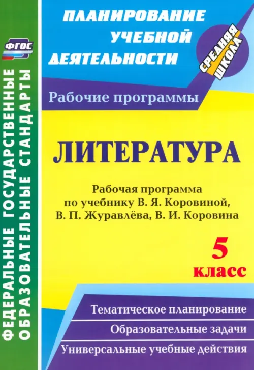 В пособии представлена рабочая программа по литературе для 5 класса, разработанная в соответствии с основными положениями Федерального государственного образовательного стандарта, планируемыми результатами основного общего образования и требованиями Примерной образовательной программы, ориентированная на работу по учебнику В.Я. Коровиной, В.П. Журавлёва, В.И. Коровина (М.: Просвещение, 2011).