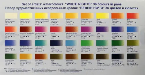 Краски акварельные художественные «Белые ночи», кюветы с палитрой, 36 цветов