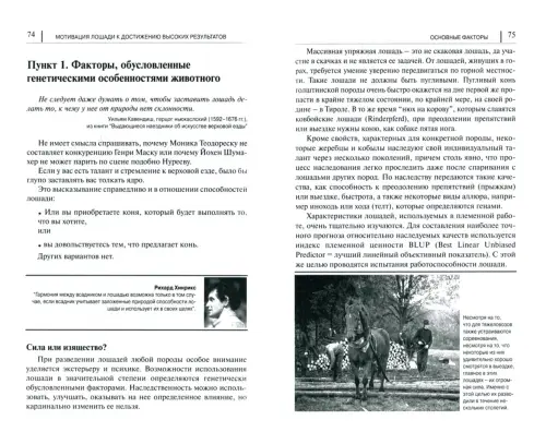 Однако, чтобы обеспечить должную мотивацию нашего партнера – лошади, необходимо научиться понимать ее язык, действия и реакции. Из этой книги вы узнаете об основных факторах, которые влияют не только на желание лошади к обучению и работе, но и на качество ее жизни и на саму жизнь, научитесь распознавать эти факторы и понимать их взаимосвязь. Автору удалось логически объяснить эту сложную зависимость и тем самым сделать ее доступной для понимания читателя. Именно поэтому эта книга столь убедительна и станет отличным наглядным пособием для всех российских любителей конного спорта, а также для специалистов-конников.