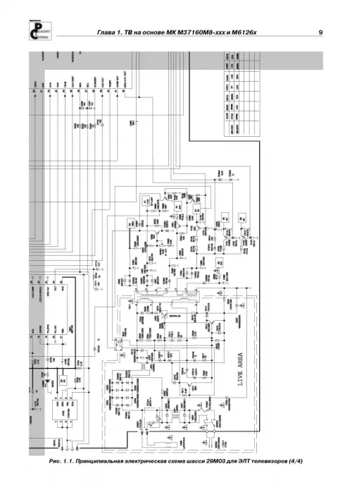 Для каждого семейства ТВ процессоров или микроконтроллеров приводятся принципиальная электрическая схема ТВ шасси. Кроме того, в двух приложениях содержится информация по сервисным режимам телевизоров на основе ТВ процессоров семейства ТМРА88хх фирмы Toshiba.