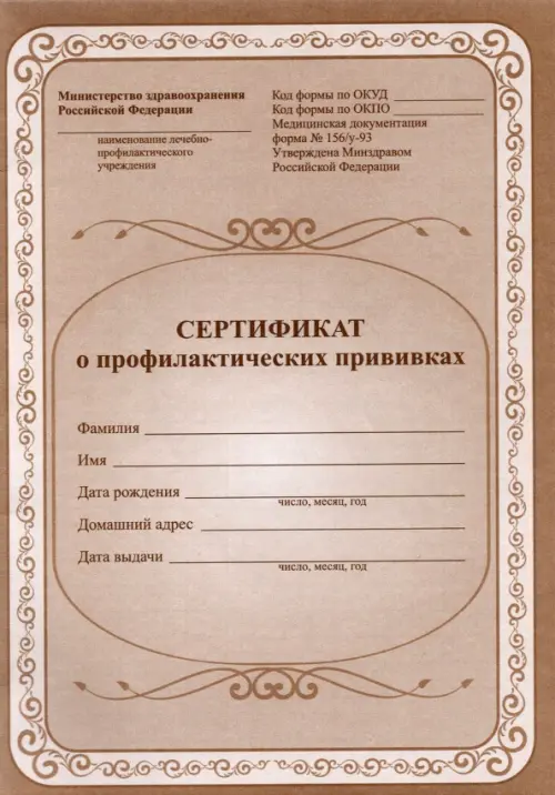 Сертификат о профилактических прививках