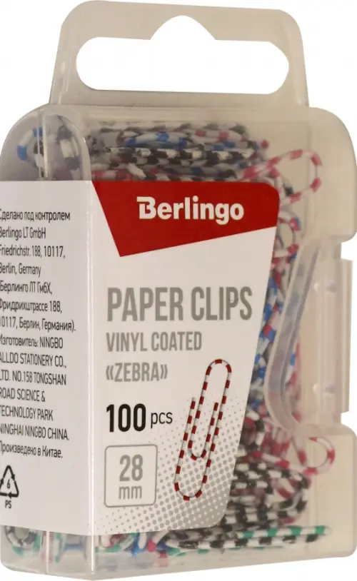 Набор скрепок Berlingo в пластиковой коробочке, "зебра", 100 штук