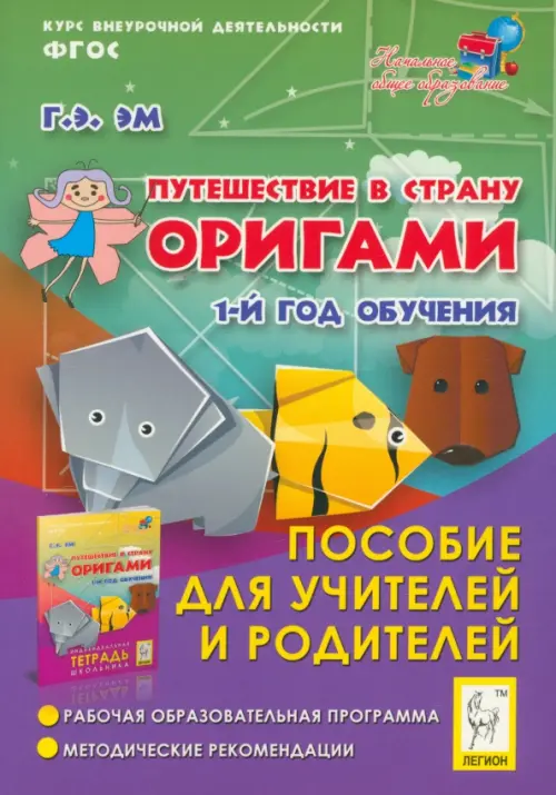 Комплекс "Путешествие в страну оригами. 1-й год обучения" состоит из двух изданий - пособия для учителей и индивидуальной тетради школьника, которую рекомендуем использовать на внеурочных занятиях каждому обучающемуся в классе. Следует отметить, что тетрадь содержит не только схемы и пошаговые рекомендации, но и цветные вклейки для разрезания и складывания, а также набор фотоиллюстраций.