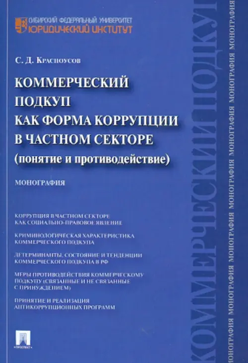 Если вы обнаружили ошибку в описании товара «Коммерческий подкуп как форма коррупции в частном секторе (понятие и противодействие). Монография» (авторы: Красноусов Сергей Дмитриевич), то выделите её мышкой и нажмите Ctrl+Enter. Спасибо, что помогаете нам стать лучше!