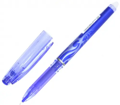 Синяя гелевая ручка "Frixion Point" пиши-стирай на основе исчезающих термочернил. Письмо корректируется с помощью специальной резинки в корпусе ручки. При нагревании от трения резинки о бумагу термочернила исчезают.