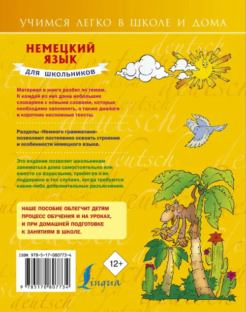 Настоящая книга представляет собой учебное пособие для школьников, начинающих изучать немецкий язык. Материал разбит по темам. К каждой теме даны словарики с новыми словами для заучивания, а также короткие несложные рассказы и диалоги. Строение немецкого языка раскрывается в разделах Немного грамматики. С помощью этого пособия школьники могут заниматься дома самостоятельно, прибегая к помощи взрослых только в тех случаях, когда требуются дополнительные разъяснения.