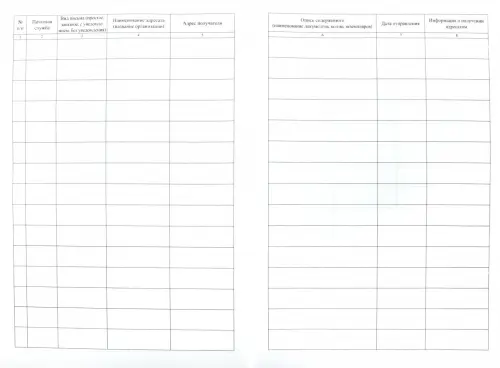 Вашему вниманию предлагается журнал регистрации почтовых отправлений.