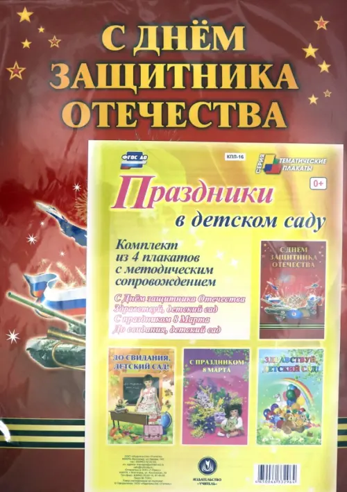 Комплект из 4 плакатов с методическим сопровождением: "Здравствуй, детский сад!", "С Днём защитника Отечества!", "С праздником 8 марта!", "До свидания, детский сад!".