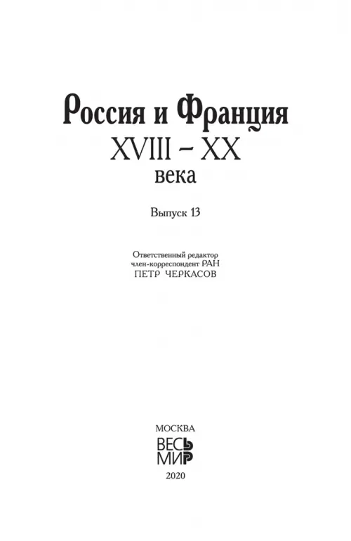 Если вы обнаружили ошибку в описании товара «Россия и Франция. XVIII–XX века», то выделите её мышкой и нажмите Ctrl+Enter. Спасибо, что помогаете нам стать лучше!