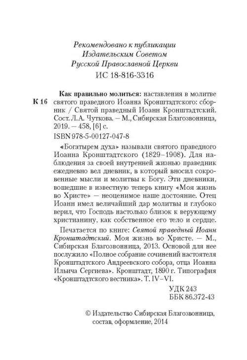 Если вы обнаружили ошибку в описании товара «Как правильно молиться. Наставления в молитве святого праведного Иоанна Кронштадского», то выделите её мышкой и нажмите Ctrl+Enter. Спасибо, что помогаете нам стать лучше!