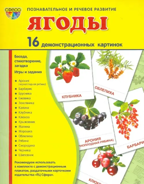 Демонстрационные картинки "Ягоды" (16 картинок)