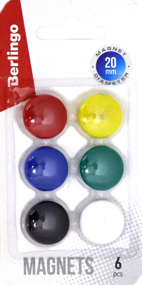 Набор фиксирующих магнитов для магнитно-маркерных досок, в разноцветной пластиковой оболочке. Диаметр - 2 см, количество - 6 штук.