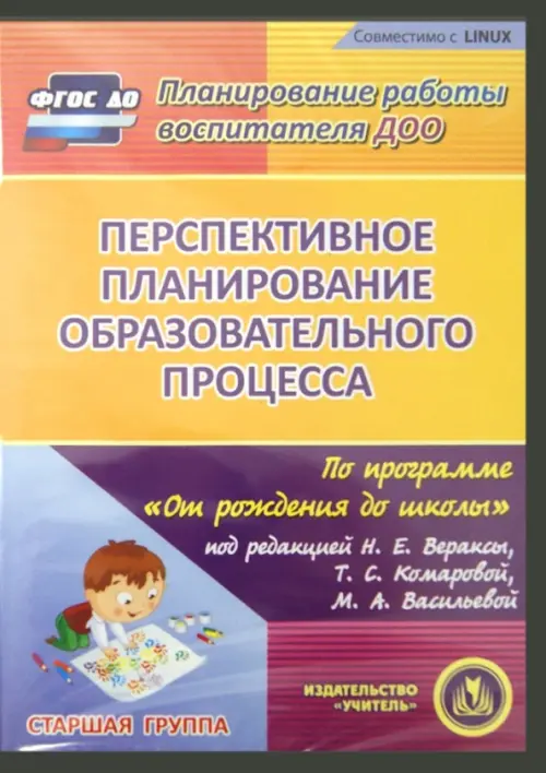 Настоящий компакт-диск "Перспективное планирование образовательного процесса по программе "От рождения до школы" под редакцией Н.Е. Вераксы, Т.С. Комаровой, М.А. Васильевой. Старшая группа" серии "Планирование работы воспитателя ДОО" содержит перспективное планирование образовательного процесса в старшей группе, составленное по примерной общеобразовательной программе дошкольного образования "От рождения до школы" под редакцией Н.Е. Вераксы, Т.С. Комаровой, М.А. Васильевой, разработанной на основе ФГОС ДО.
