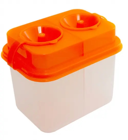 Заглушки присоединены к крышке, что исключает их потерю. Два отделения: для смывания краски и ополаскивания кисточки в чистой воде.