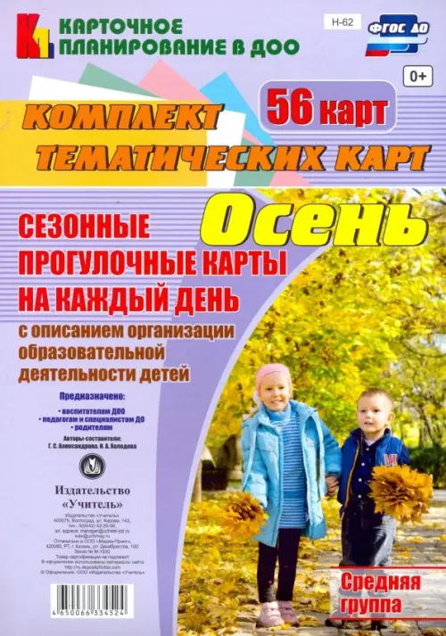 Комплект тематических карт. Осень. 56 карт. Сезонные прогулочные карты на каждый день с описанием организации образовательной деятельности детей. Предназначено воспитателям ДОО, педагогам и специалистам ДО, родителям.