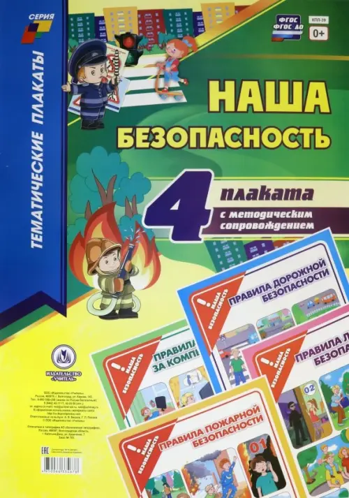 Комплект плакатов "Наша безопасность" предназначен для ознакомления дошкольников и младших школьников с правилами дорожной, пожарной, личной безопасности, правилами работы за компьютером, а также могут быть использованы для ознакомления с окружающим миром, развития речи, словесно-логического мышления, произвольной смысловой памяти, произвольного внимания, пространственного воображения, организационных, рефлексивных умений, способности к реализации внутреннего плана действий.