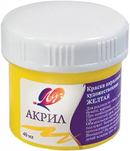 Краска акриловая художественная, 40 мл, желтая
