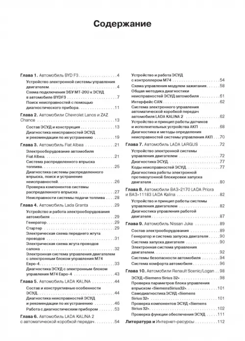 Настоящая книга представляет собой практическое пособие по диагностике систем управления бензиновыми двигателями наиболее продаваемых в России бюджетных автомобилей отечественных и иностранных производителей, а именно: BYD F3, CHEVROLET Lanos, ZAZ Chance, FIAT Albea, LADA Granta, LADA Kalina, LADA Kalina 2, LADA Largus, LADA Priora, NISSAN Juke, RENAULT Logan и RENAULT Scenic.