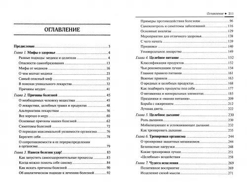 Книга адресована всем, кто хочет разобраться в вопросах оздоровления, понять, как работает наш организм. В книге раскрыты тайные знания в борьбе с болезнями, рассказано о том, как наблюдать за своим здоровьем и своевременно принимать необходимые меры. Книга поможет определить причины недугов, противостоять некачественному лечению, выбрать наиболее подходящее средство оздоровления, диету, образ жизни.