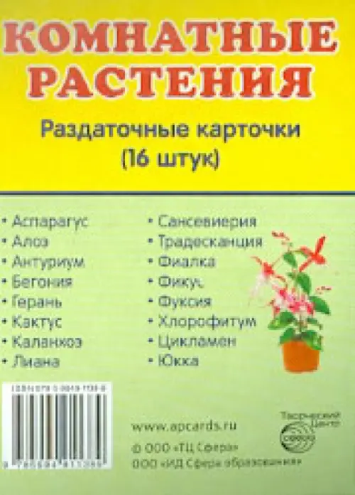 Раздаточные карточки "Комнатные растения" 63х87 мм.