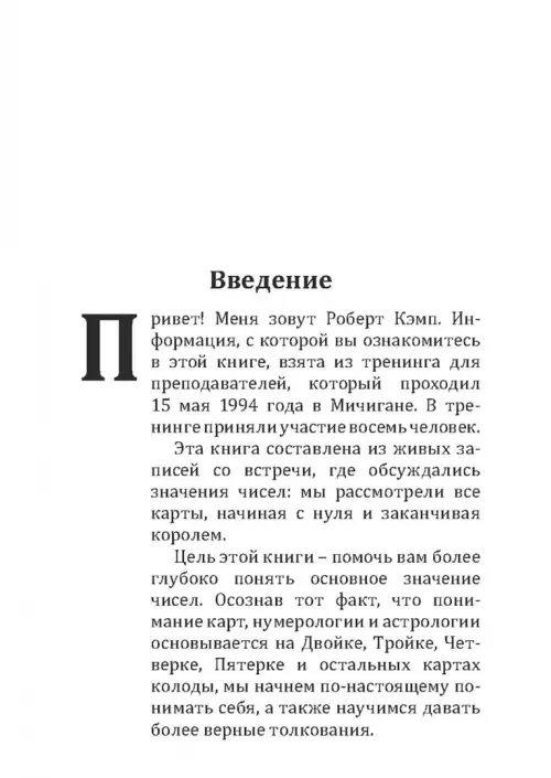 В основу данного произведения положен семинар посвященный числам, и как их трактовать в картах. Автор поставил своей целью дать более глубокое понимание основных значений чисел и как они взаимосвязаны с картами. Это позволит давать точные предсказания и понастоящему понять себя. Используя свой личный жизненный опыт, вы сможете получить доступ к числовому коду, заложенному в карте, что позволит каждому, кто желает применять его в науке предсказаний.