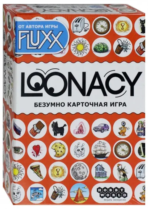 Loonacy (Лунаси) – очень забавная и веселая игра, в которой победит тот, что проворнее и внимательнее. Суть игры заключается в том, чтобы быстрее всех остальных избавится от карт в руке. Сделать это можно только одним способом: сбросить. На каждой карте есть по две картинки, и если одна из них совпадает с картинкой на карте в вашей руке, вы можете сбросить карту. После этого уже картинки только что сброшенной карты являются ориентиром для игроков. Нет никаких ходов, кто быстрее тот и молодец. Единственное правило – сбрасывать по одной карте за раз. Но никто не мешает сбросить хоть всю руку по одной карте, если вы смогли собрать карты с подходящими картинками. Но не обольщайтесь. Другие игроки могут делать то же самое. А если двое участников сбрасывают карту одновременно, засчитывается та, которая первая коснулась стопки сброса. А значит необходимо учиться метать картон быстро и метко.