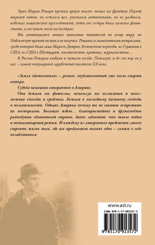 Если вы обнаружили ошибку в описании товара «Земля обетованная» (авторы: Ремарк Эрих Мария), то выделите её мышкой и нажмите Ctrl+Enter. Спасибо, что помогаете нам стать лучше!