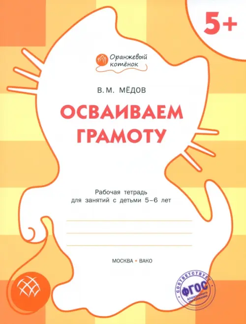 Рабочая тетрадь по подготовке к обучению грамоте детей 5–6 лет, составленная в соответствии с требованиями Федерального государственного образовательного стандарта дошкольного образования, является составной частью учебно-методического комплекта "Оранжевый котёнок". Тематические задания и упражнения помогут дошкольникам познакомиться с основами грамоты, сформировать правильное произношение гласных и согласных звуков, умение управлять темпом речи, пользоваться интонационными средствами выразительности. Пособие способствует развитию звуковой стороны речи, фонематического слуха и речевого внимания. Тематический подход в подборе упражнений обогащает словарный запас и расширяет кругозор.