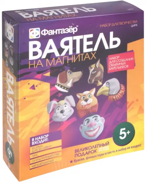 Фабрика фантазий: барельефы, наборы для лепкиЕсли вы обнаружили ошибку в описании товара «Ваятель. Набор для создания объемных барельефов на магнитах. Цирк», то выделите её мышкой и нажмите Ctrl+Enter. Спасибо, что помогаете нам стать лучше!