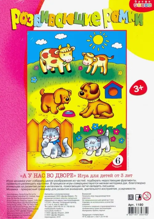 Если вы обнаружили ошибку в описании товара «Развивающая рамка. А у нас во дворе», то выделите её мышкой и нажмите Ctrl+Enter. Спасибо, что помогаете нам стать лучше!
