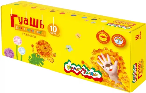 Гуашь Каляка-Маляка® имеет оптимальное цветовое сочетание и обладает хорошей насыщенностью. Цвета гуаши соответствуют естественным цветам природы. Это положительно влияет на формирование у ребенка правильного цветового восприятия и на развитие его творческих способностей.