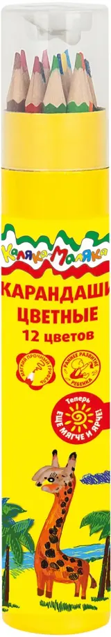 Карандаши цветные Каляка-Маляка шестигранные с заточкой в пенале-тубусе (12 цветов)