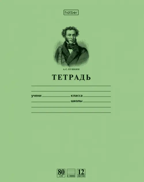 Тетрадь школьная Пушкин А.С., 12 листов (линейка), зеленая