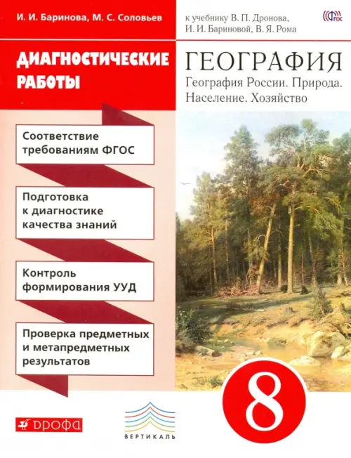 Если вы обнаружили ошибку в описании товара «География. 8 класс. Диагностические работы к учебнику В.П. Дронова и др. Вертикаль. ФГОС» (авторы: Баринова Ирина Ивановна, Соловьев Максим Сергеевич), то выделите её мышкой и нажмите Ctrl+Enter. Спасибо, что помогаете нам стать лучше!