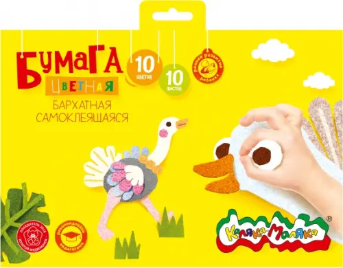 Бумага цветная, бархатная, самоклеящаяся "Калака-Маляка", 10 цветов, 10 листов