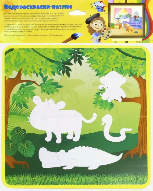В джунглях. Водораскраски-пазлы