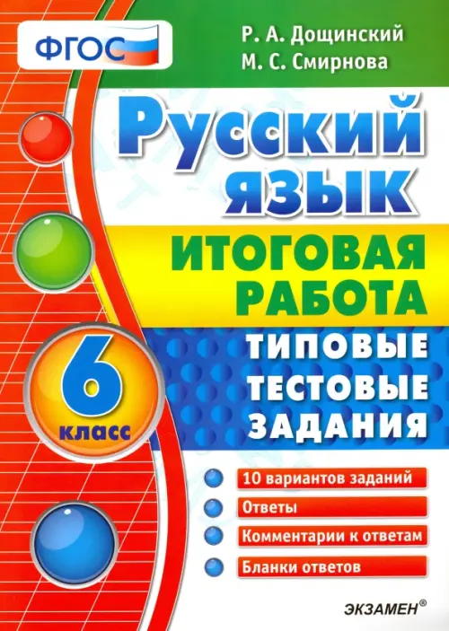 Если вы обнаружили ошибку в описании товара «Русский язык. 6 класс. Итоговая работа. Типовые тестовые задания. ФГОС» (авторы: Смирнова Марина Сергеевна, Дощинский Роман Анатольевич), то выделите её мышкой и нажмите Ctrl+Enter. Спасибо, что помогаете нам стать лучше!