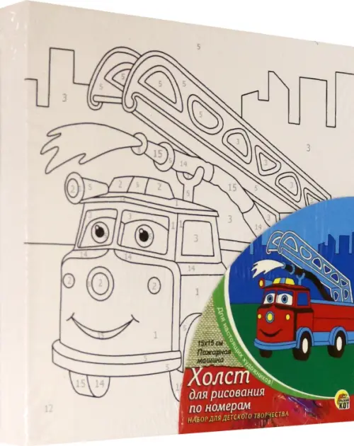 Холст для рисования по номерам, с красками. Пожарная машина