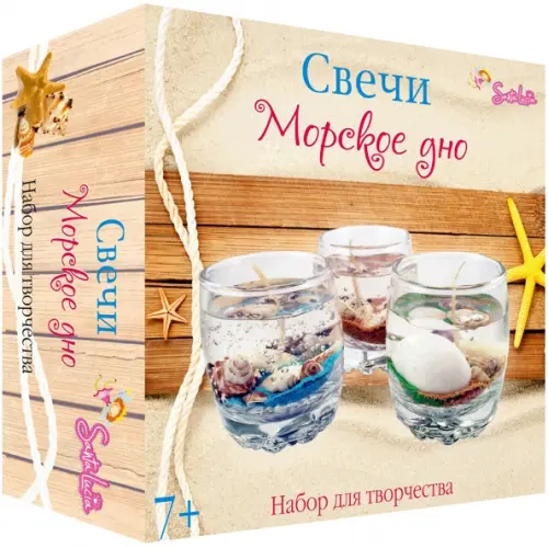 В наборе: 3 подсвечника, ракушки - 9 видов, песок - 4 цвета, фитиль, гель, инструкция.