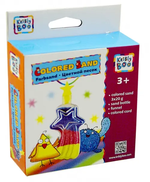 В наборе: песок 3-х цветов, флакон с крышкой, воронка, шнурок.
