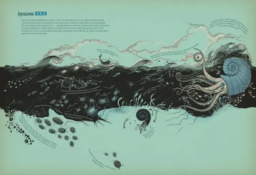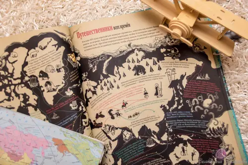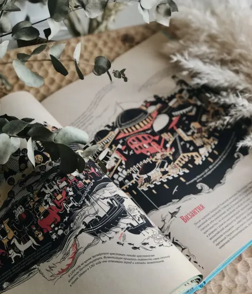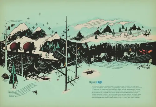 Что мы знаем о всемирной истории? Можем ли выстроить наши знания о разных эпохах в одну стройную линию, связав одни события с другими? Эта большая, оригинально иллюстрированная книга поможет вам проследить весь ход истории. Она проведет вас по временной ленте и позволит рассмотреть вблизи каждый значимый ее отрезок. Большой Взрыв - начало начал - становится отправной точкой и в этой книге. Черная бесконечная лента из космоса прокладывает путь из эпохи в эпоху. Зарождение жизни на Земле и эра динозавров, Древний Египет и Древняя Греция, кельты, гунны, викинги, Средневековье и Возрождение... - и так до наших дней. В потоке времени всплывают важные события, яркие исторические личности, постройки, произведения искусства, открытия, изобретения, отражая жизнь каждой эпохи. Эта книга - не энциклопедия и не учебник по истории, здесь нет подробных описаний и дат. Но благодаря ярким образам и самобытным иллюстрациям она производит неизгладимое впечатление, увлекает и помогает понять ход истории. Интересные факты об иллюстрациях Каждый разворот наполнен огромным количеством деталей и персонажей. На то, чтобы всех найти и рассмотреть, потребуется немало времени. Лента времени неслучайно черная. Она берет свое начало в космическом пространстве и превращается в бесконечный поток, наполненный событиями. Страницы книги состарены - вы будто листаете старинную рукопись или летопись. Мы мало знаем о событиях давних времен, поэтому на первых разворотах книги довольно много свободного места. Но чем ближе к концу книги, а значит и к нашему времени, тем насыщеннее и детальнее коллажи. Для подростков и увлеченных взрослых, которые любят необычные книги и современные иллюстрации. Об авторе Петер Гюс - бельгийский иллюстратор. Изучал анимацию в Королевской Академии визуальных искусств в Генте (Бельгия). Много лет работал в театре: оформителем сцены, осветителем, техническим директором. Сейчас занимается графическим дизайном, анимацией и иллюстрацией.