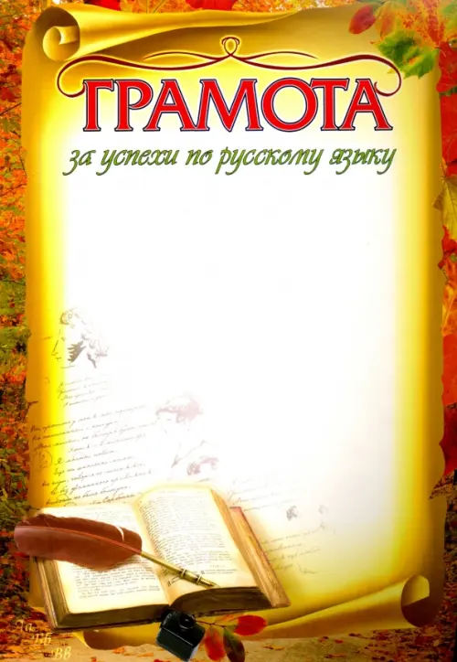 Если вы обнаружили ошибку в описании товара «Грамота за успехи по русскому языку», то выделите её мышкой и нажмите Ctrl+Enter. Спасибо, что помогаете нам стать лучше!