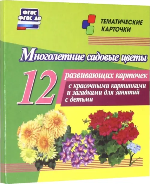 Многолетние садовые цветы: 12 развивающих карточек с красочными картинками, стихами и загадками для занятий с детьми.