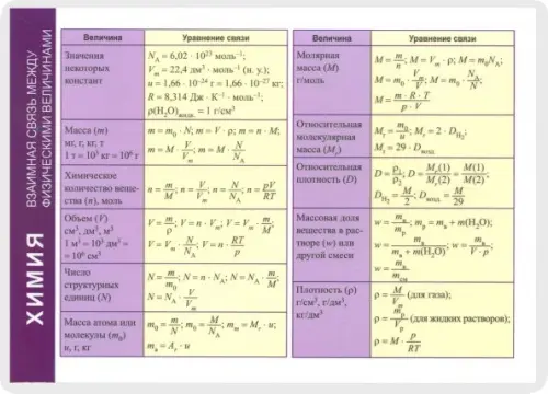 Химия. Взаимная связь между физическими величинами