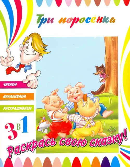 Читаем, наклеиваем, раскрашиваем - это книга, которая поможет малышам учиться читать, работать с цветом и наклеивать картинки точно по контуру. В каждой книге в краткой форме излагается популярная сказка. На каждой странице ребенка ждет иллюстрация, на которую уже нанесены некоторые цвета, и которую он сможет раскрасить сам. На дополнительной странице вы найдете стикеры, которые можно наклеить на соответствующие иллюстрации в книге.